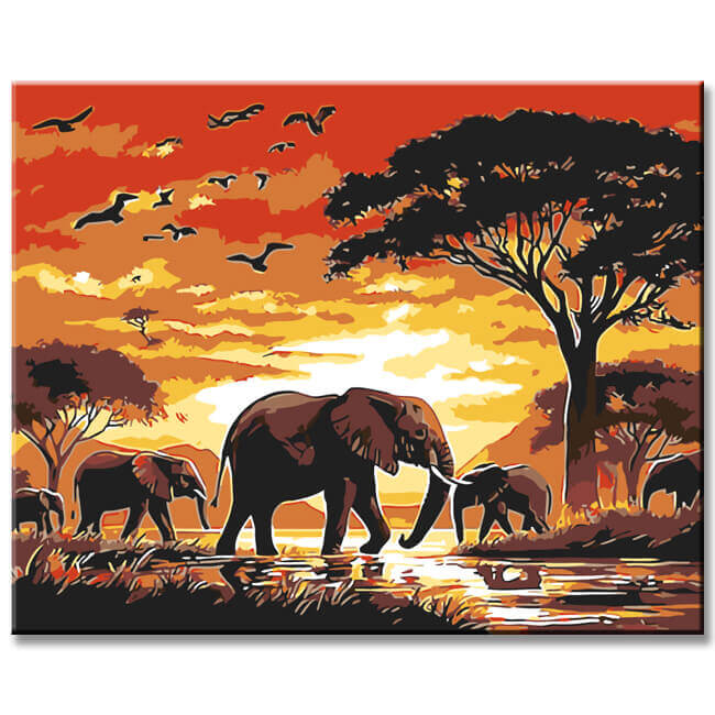 Malen nach Zahlen elefanten in Afrika