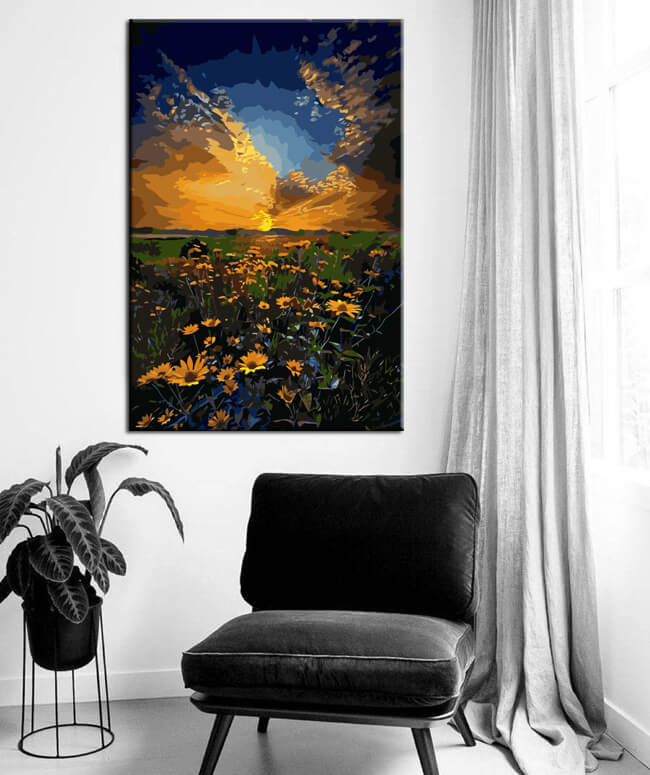 Malen nach Zahlen Sonnenblumen bei Sonnenuntergang