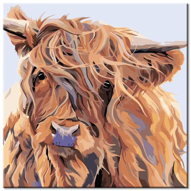 Malen nach Zahlen Highland Hochland Rind im Wind
