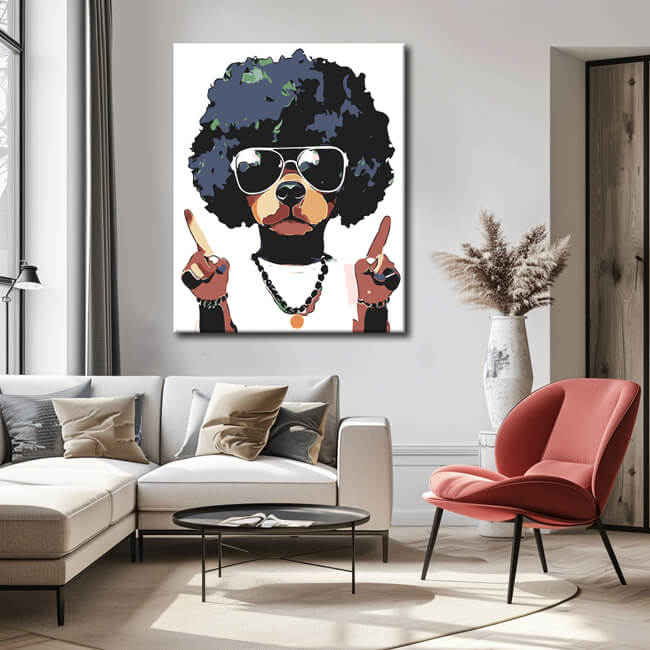 Malen nach Zahlen Kunst Hund mit Schwarzer Perrücke und Halskette