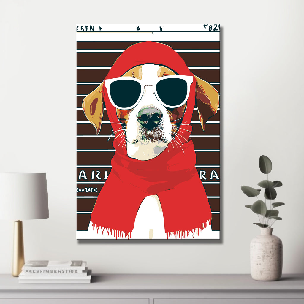 Malen nach Zahlen Kunst Verbrecherhund mit Sonnenbrille und Kopftuch
