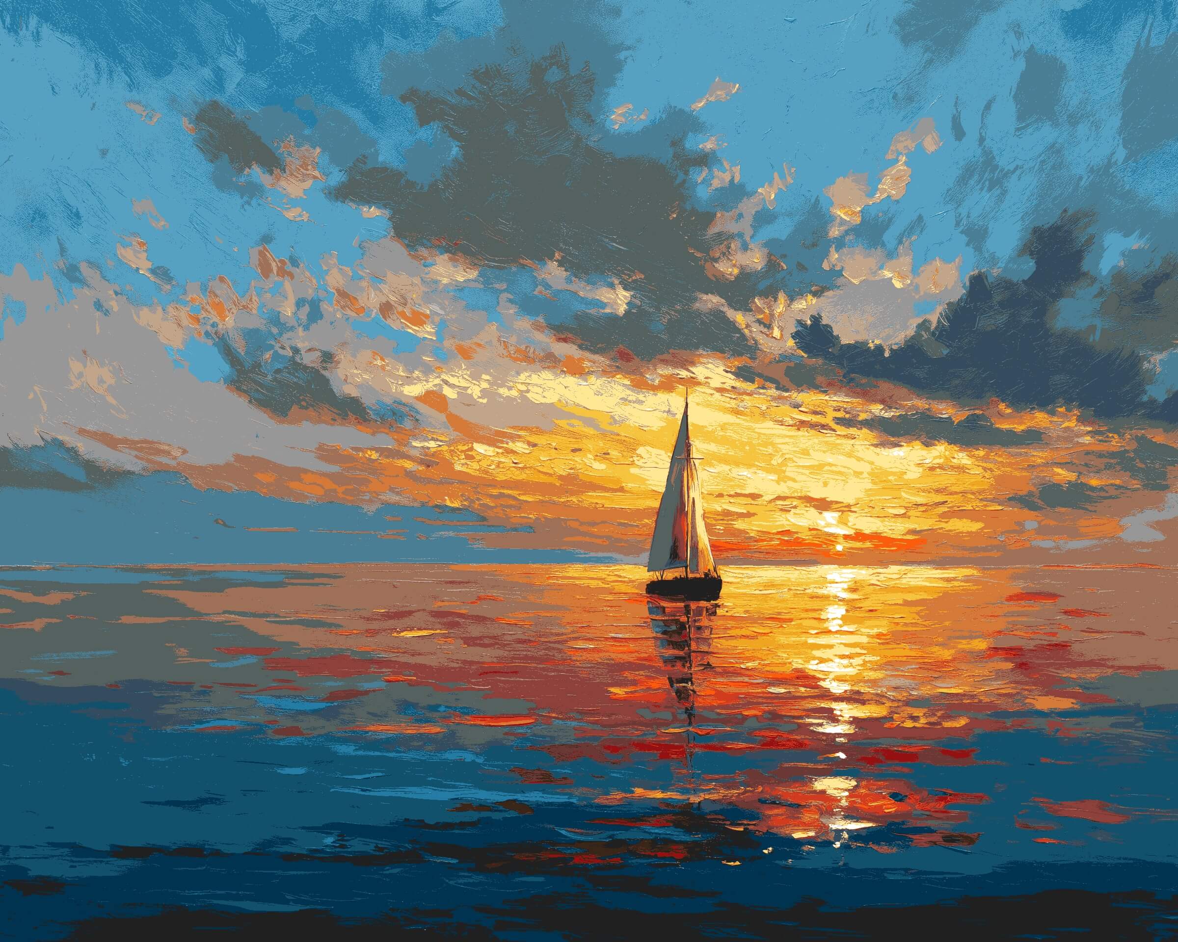 Malen nach Zahlen Bilder Segelboot im Sonnenuntergang