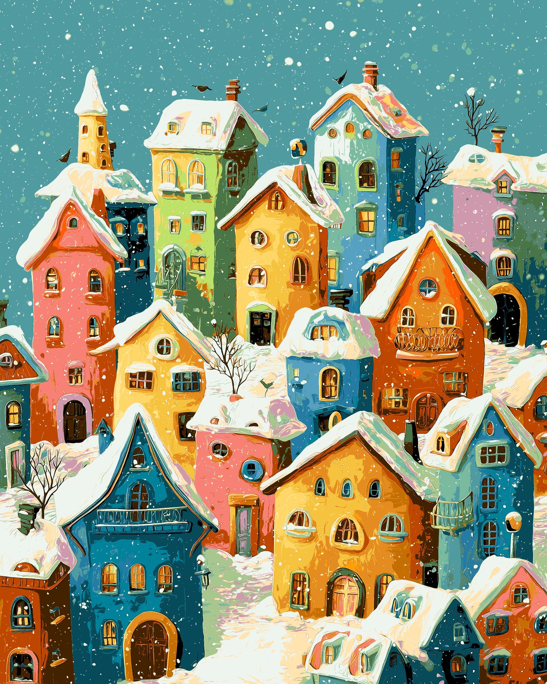Malen nach Zahlen Moderne Kunst Häuser im Winter