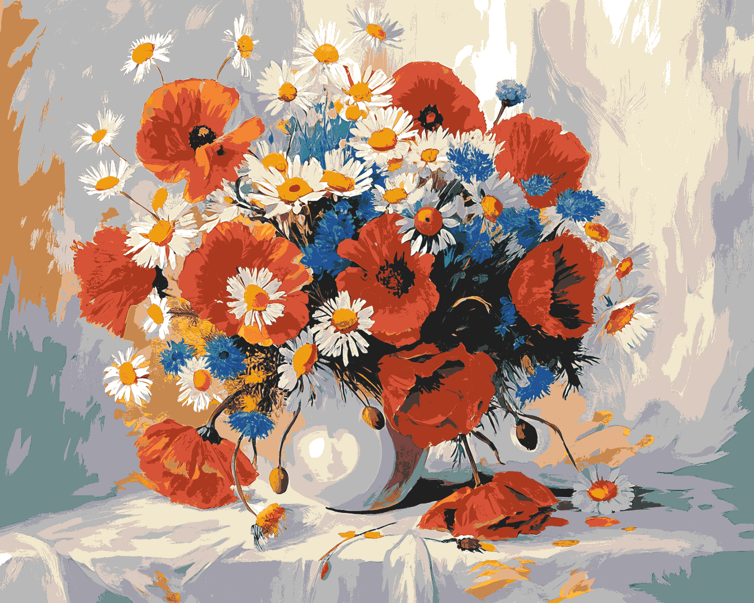 Malen nach Zahlen ist eine kreative und leicht erlernbare Methode, bei der eine Leinwand in nummerierte Felder aufgeteilt ist. Jede Zahl steht für eine bestimmte Farbe, die Sie einfach mit einem Pinsel in den entsprechenden Bereich malen. Sie benötigen keine Vorkenntnisse – folgen Sie lediglich den Zahlen, und nach und nach entsteht ein beeindruckendes Kunstwerk. Selbst anspruchsvolle Motive lassen sich so mühelos gestalten und werden zu einem echten Hingucker!Wie funktioniert es?
