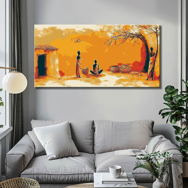 Malen nach Zahlen Afrika Dorf in Steppe Alltag