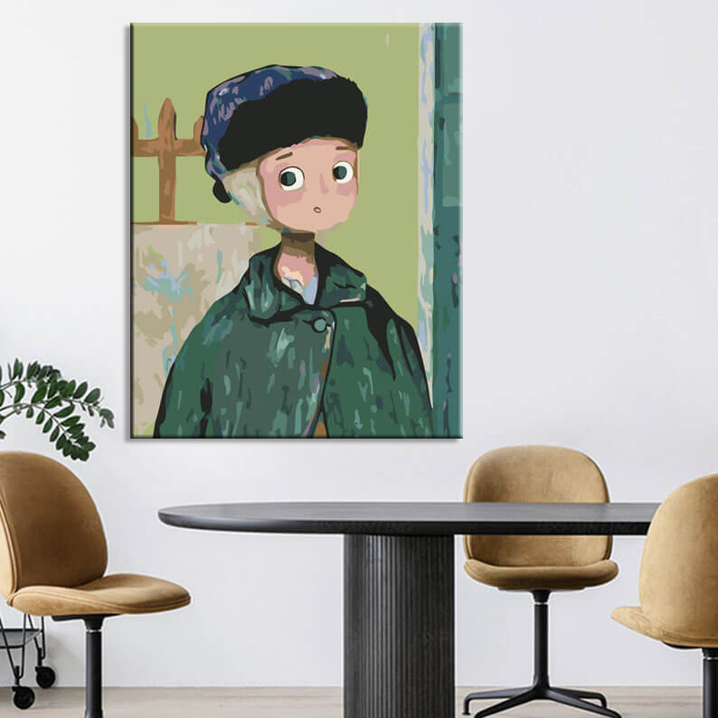 Malen nach Zahlen Kunst Junge mit grüner Mütze und Jacke