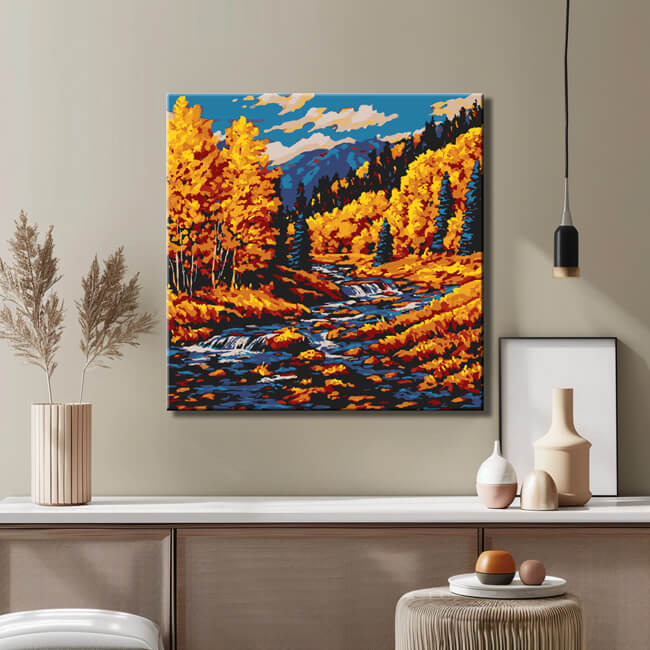 Malen nach Zahlen Kunst Natur Fluß fließt durch die Herbstlandschaft