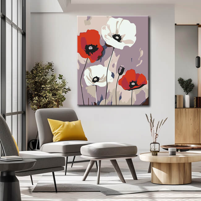 Malen nach Zahlen Rote weiße Mohnblumen