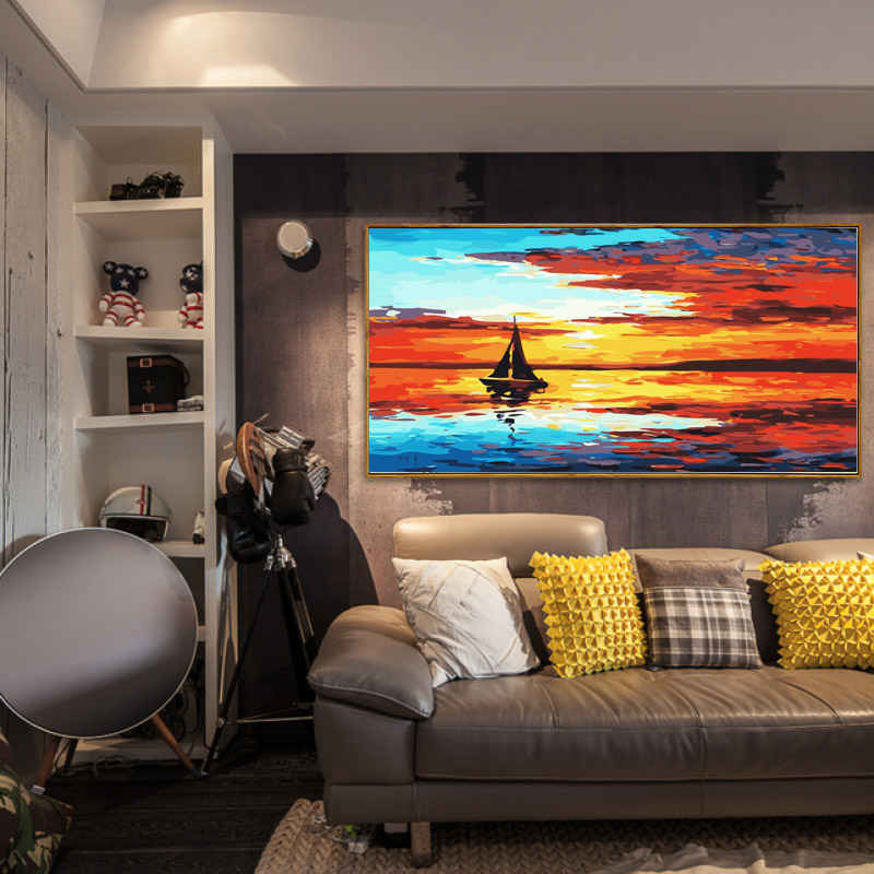Malen nach Zahlen Segelboot im Sonnenuntergang