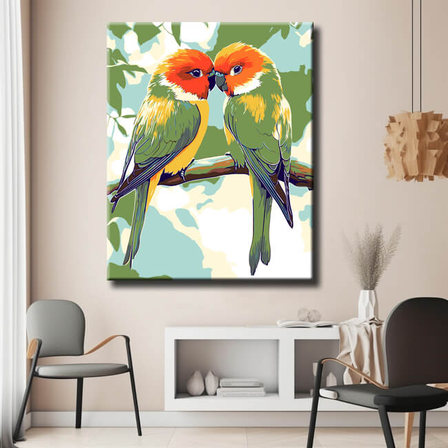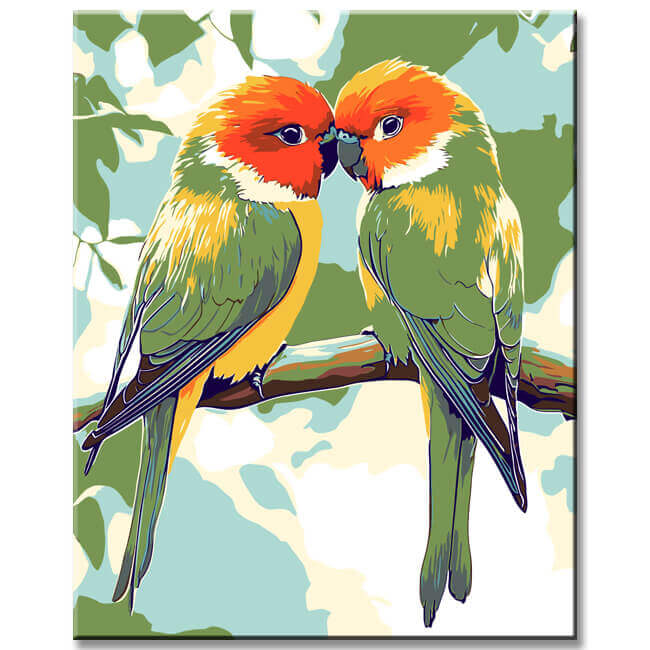 Malen nach Zahlen tier Zwei grüne Vögelchen