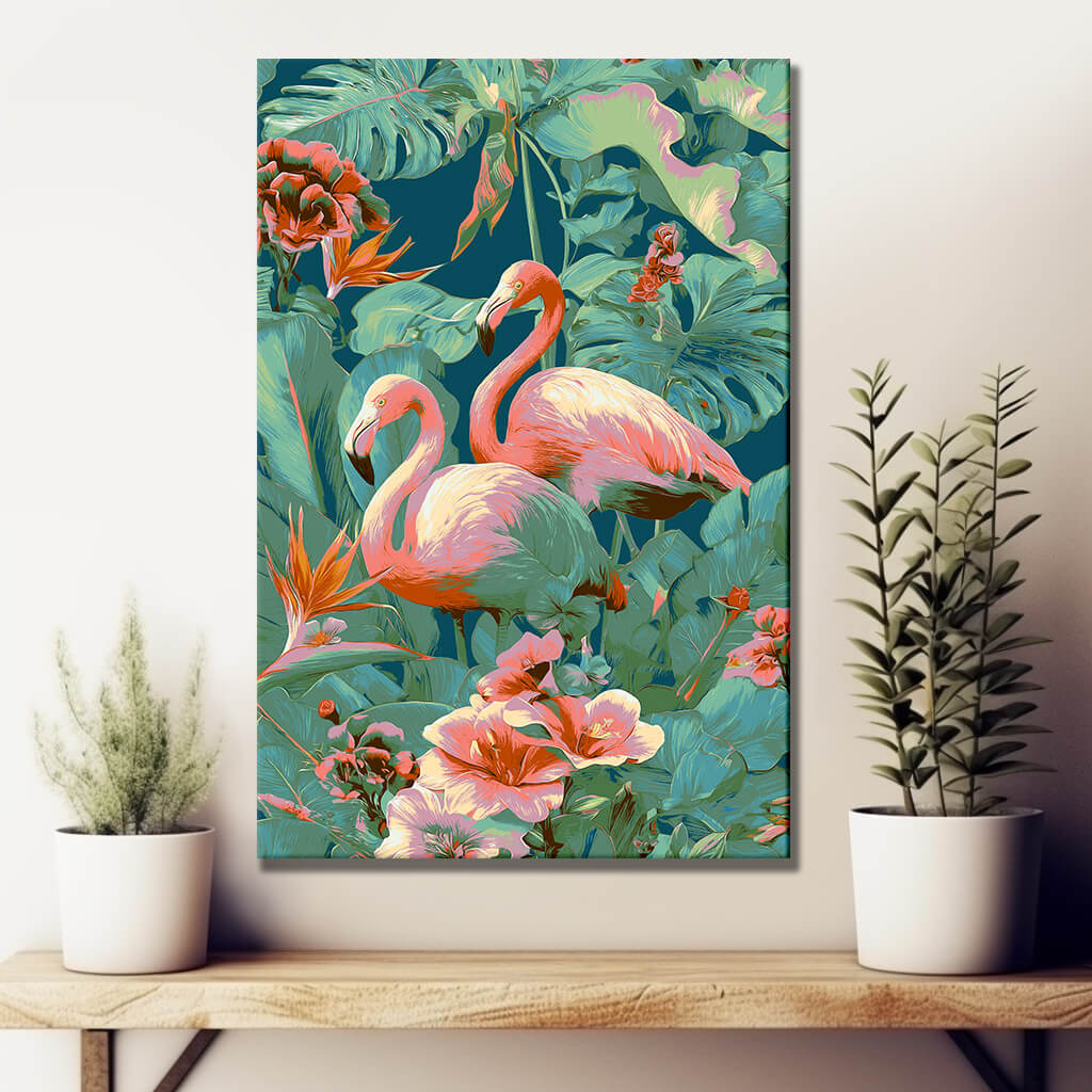 Malen nach Zahlen Tiere Flamingo Blumen